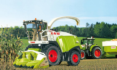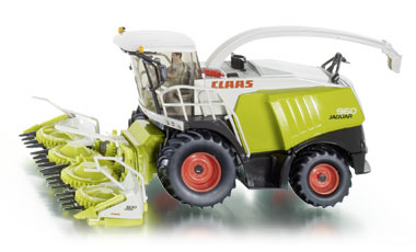 Het nieuwe hakselaar-vlaggeschip van Claas is ook in verkleinde maatstaf 1:32 een indrukwekkende verschijning met vele details en functies. De wielnaafasbesturing aan de achterkant wordt met een draaiknop op het dak van het machinehuis bediend. De motorkappen rechts en links evenals aan de achterkant zijn te openen en geven het zicht op een gedetailleerd gevormde motor vrij. De uitwerper is 360 graad zwenkbaar. Veel rijcomfort wordt over een vering aan de vooras gegeven. Het maïsbek kan al naar behoefte naar boven of naar beneden worden gebracht evenals opgeklapt of afgenomen worden. De cabine met chauffeur in Claas-outfit is geel gedetailleerd gevormd en met lampen en klapbare spiegels voorzien.