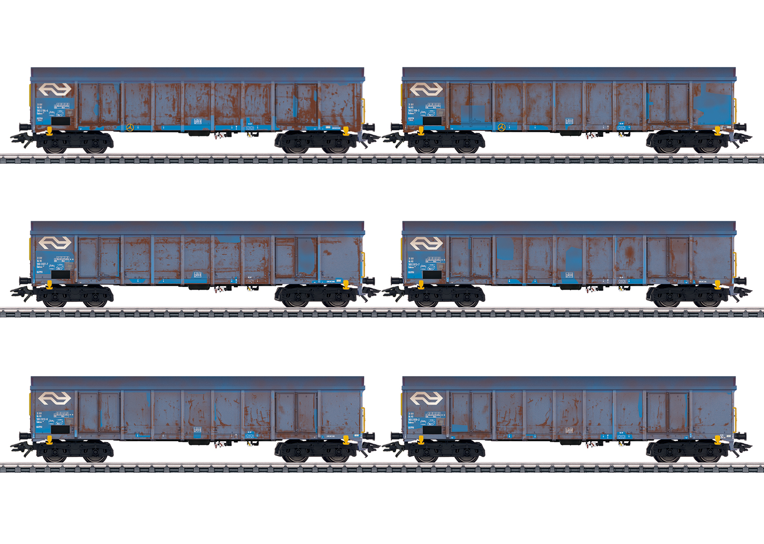 47189 Marklin 6-delige set NS hogeboordwagens "houtspaandervervoer"