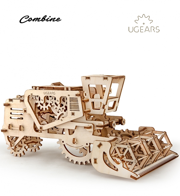 Onze Combine – het is een 3D-puzzel, een bouwpakket, een spel voor meerdere personen. Dit allemaal biedt de Combine van UGears. Het model is geïnspireerd op een graanmaaier. Net zoals bij het prototype heeft onze combine een dorstrommel die ronddraait als de combine gaat rijden. Op het dak van de combine bevind zicht een geheime ruimte. Daarin kunt u kleine voorwerpen vervoeren.