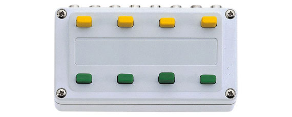 Om 4 verschillende spoor- of lichtstroomkringen in- of uit te schakelen. Zo kunnen 4 opstelsporen in verschillende rijstroomkringen geschakeld worden. Met 8 bussen aan de achterzijde. Alle aansluitingen voor nieuwe stekkers uit de set 71400. 8 passende stekkers meegeleverd. Afmetingen 80 x 40 mm.