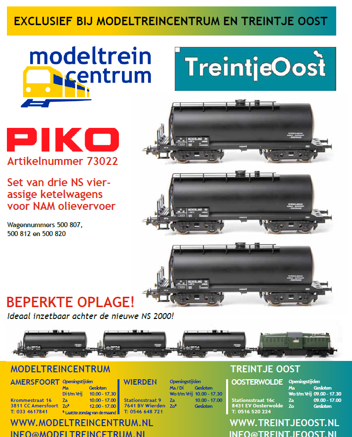 73022 Piko HO set van 3 NAM ketelwagens beperkte oplage exclusief voor ModeltreinCentrum en TreintjeOost