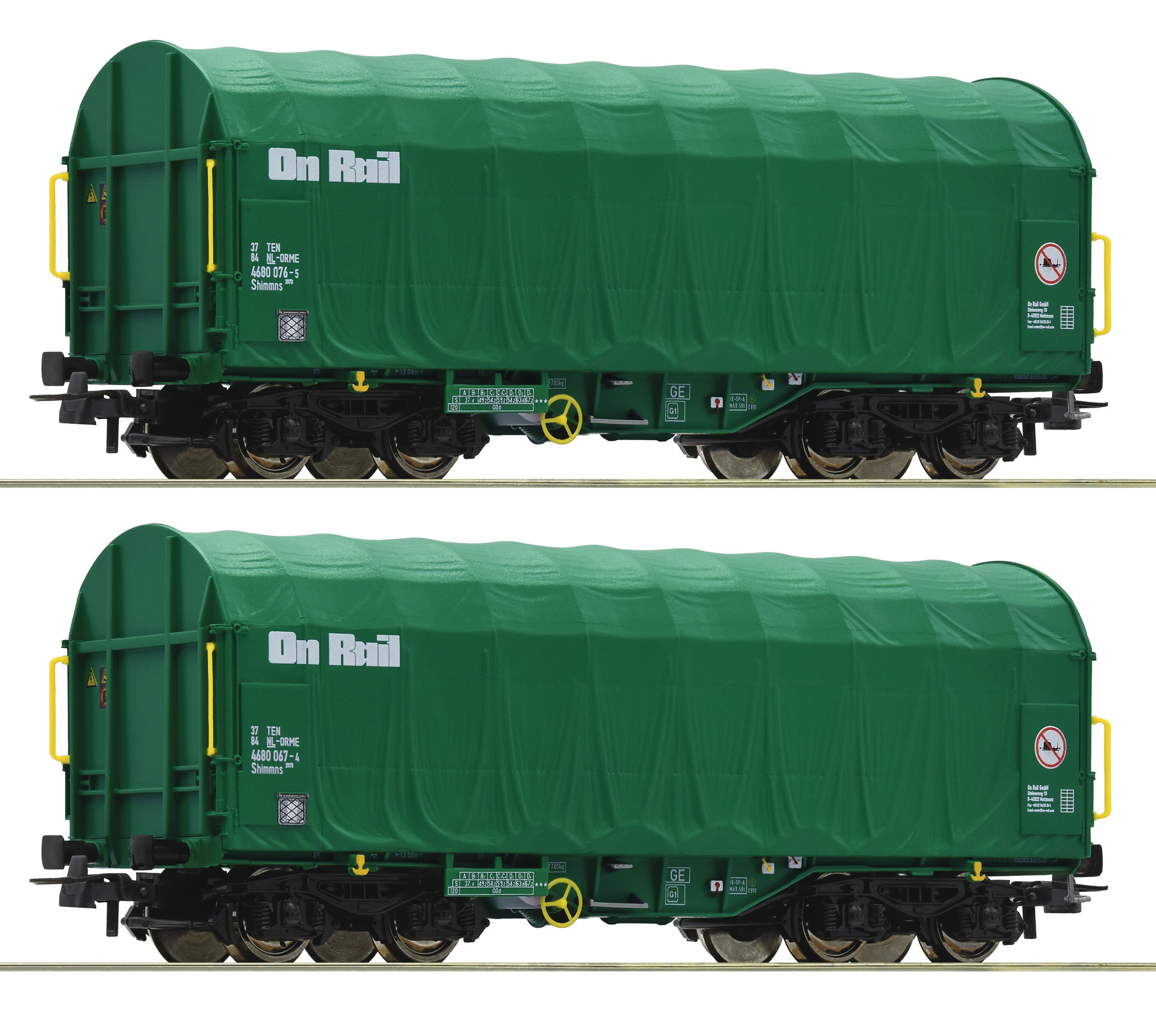 Waagenset mit zwei Schiebeplanenwagen, Bauart Shimmns, der On Rail.