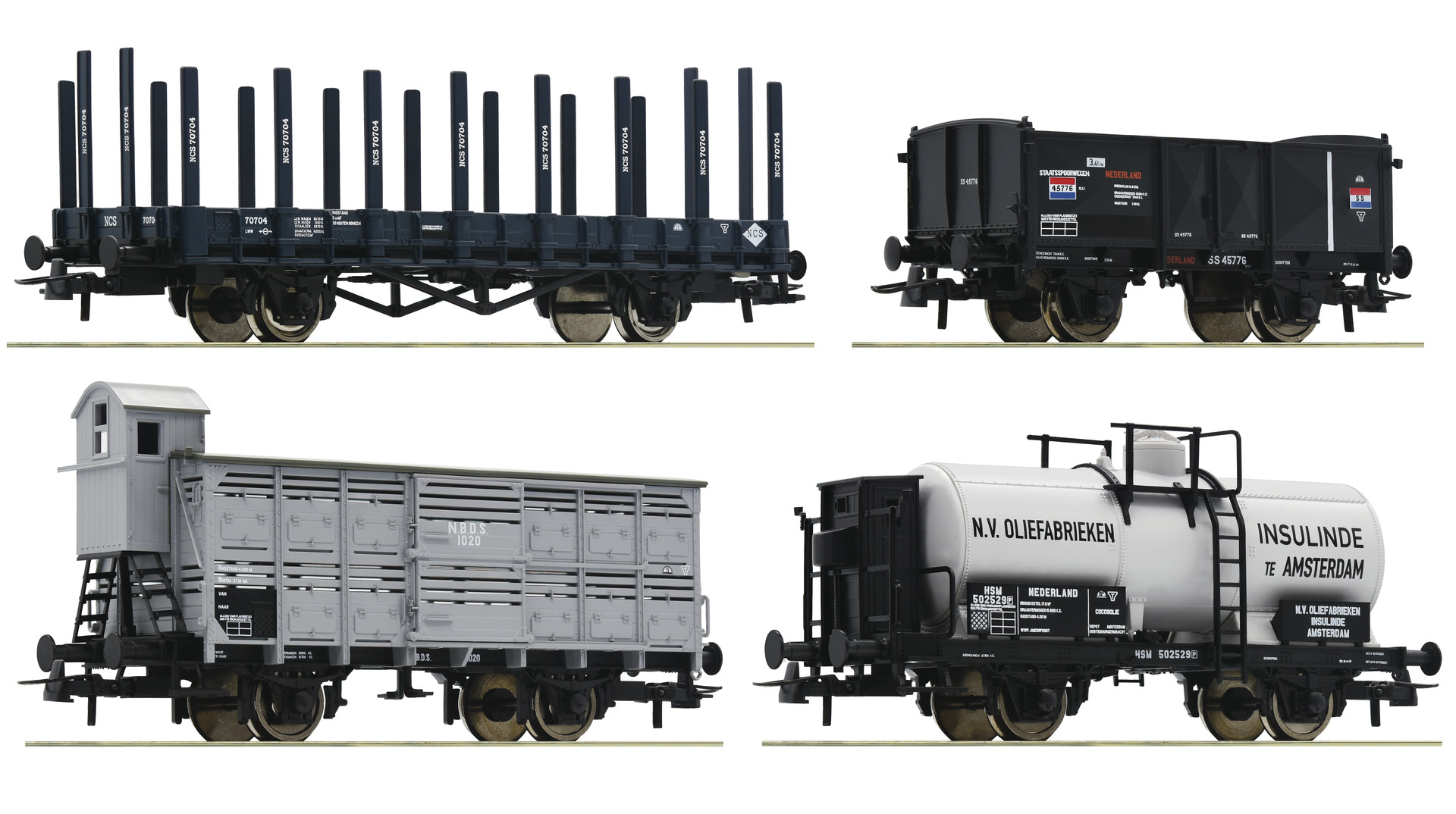76077 Roco 4-delige set goederenwagens SS Staats Spoorwegen NL