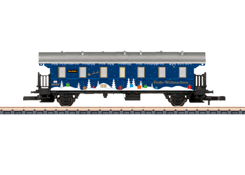 Model: Personenwagen "Donnerbüchse" 3e klas in fraaie vormgeving in kerstsfeer. Lengte over de buffers 63 mm.