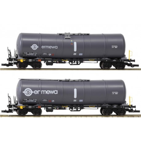 96210017 Igra Model 2 delige set tankwagens Zacns 88 Ermewa rood logoGeschikt voor H0..