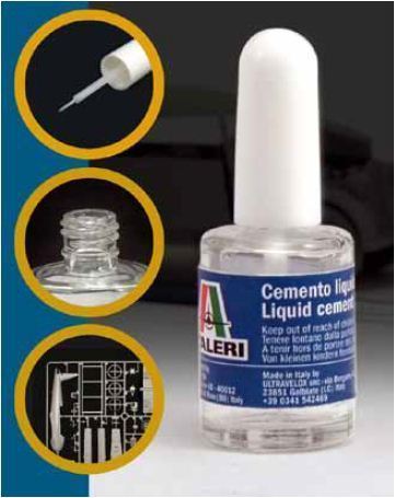Lijm ITALERI 15ml met kwast is een speciale lijm voor het verlijmen van polystyreen en een verscheidenheid aan andere kunststoffen. Lijm ITALERI 15ml met kwast vloeistof is dun en vormt een taai-elastisch, glasheldere zelfklevende folie.