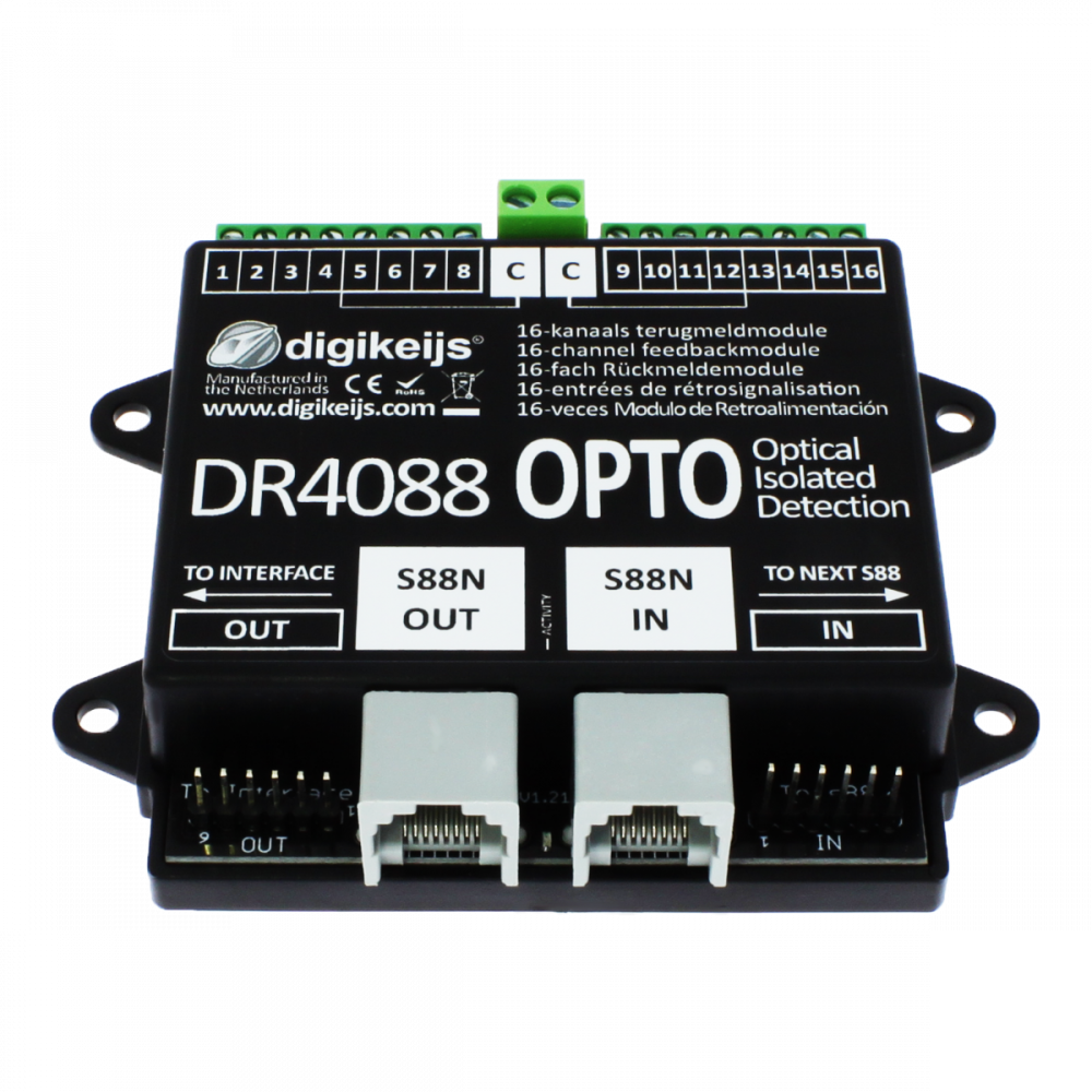 DR4088OPTO Digikeijs 16-kanaals s88N terugmeldmodule met optische ingangen Drie rail systeem met optische ingangen en s88N aansluitingen(H-Bridge)