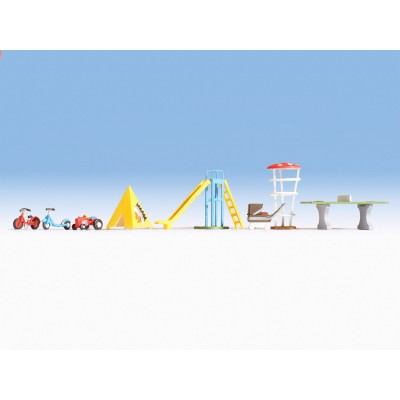 tafeltennistafel, klimpaddestoel, glijbaan, tent,