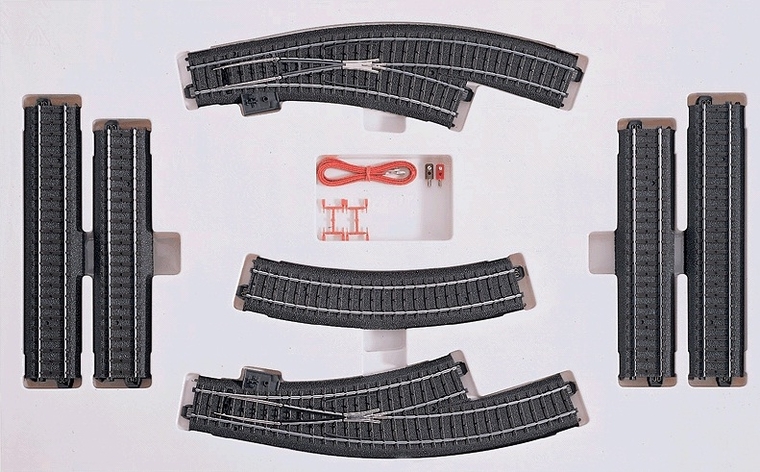 Inhoud: 3 rechte rails 24188, 5 rechte rails 24172, 2 gebogen rails 24224, 1 wissel 24611, 1 ..